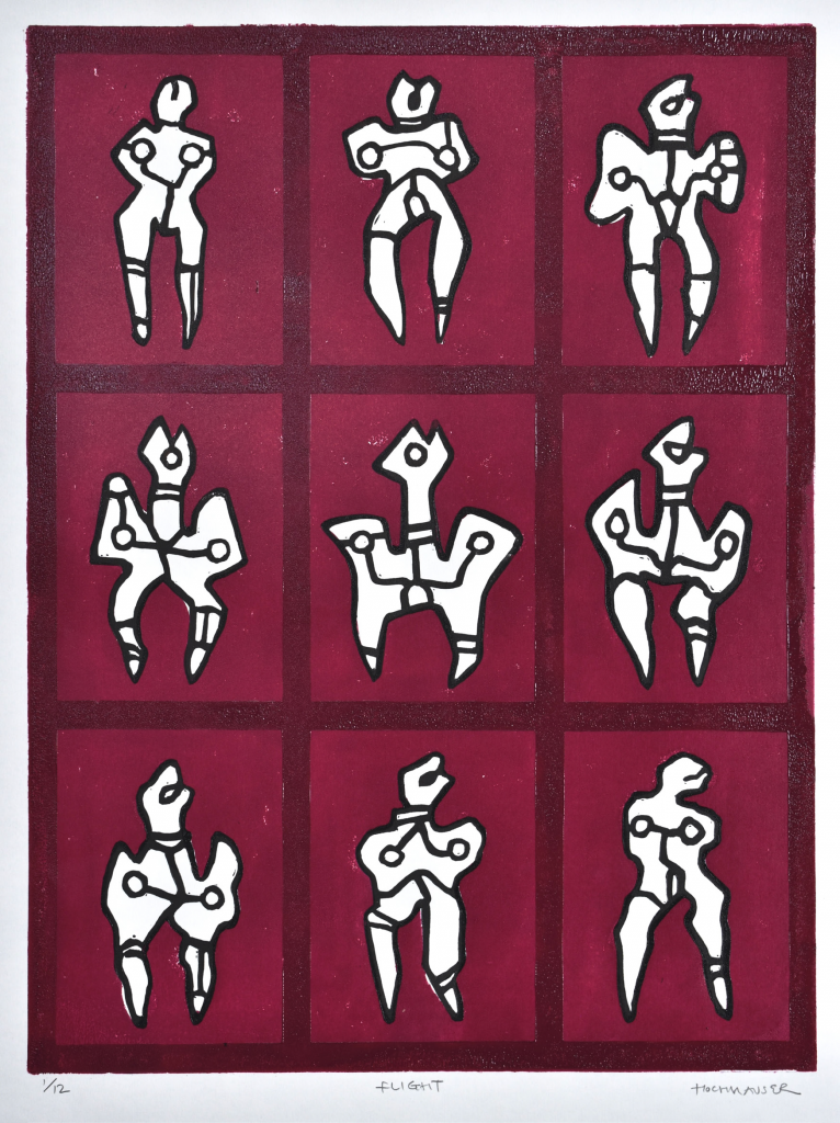 In David Hochhauser’s ‘Flight’ the Wandering Jew is peripatetic, like a bird, and it is at the climax that his wings and his eyes open to look down on the landscape below. After a fleeting look at some novel insight into the cultural scenery that denies him space, he looks on for his next branch upon which to perch.