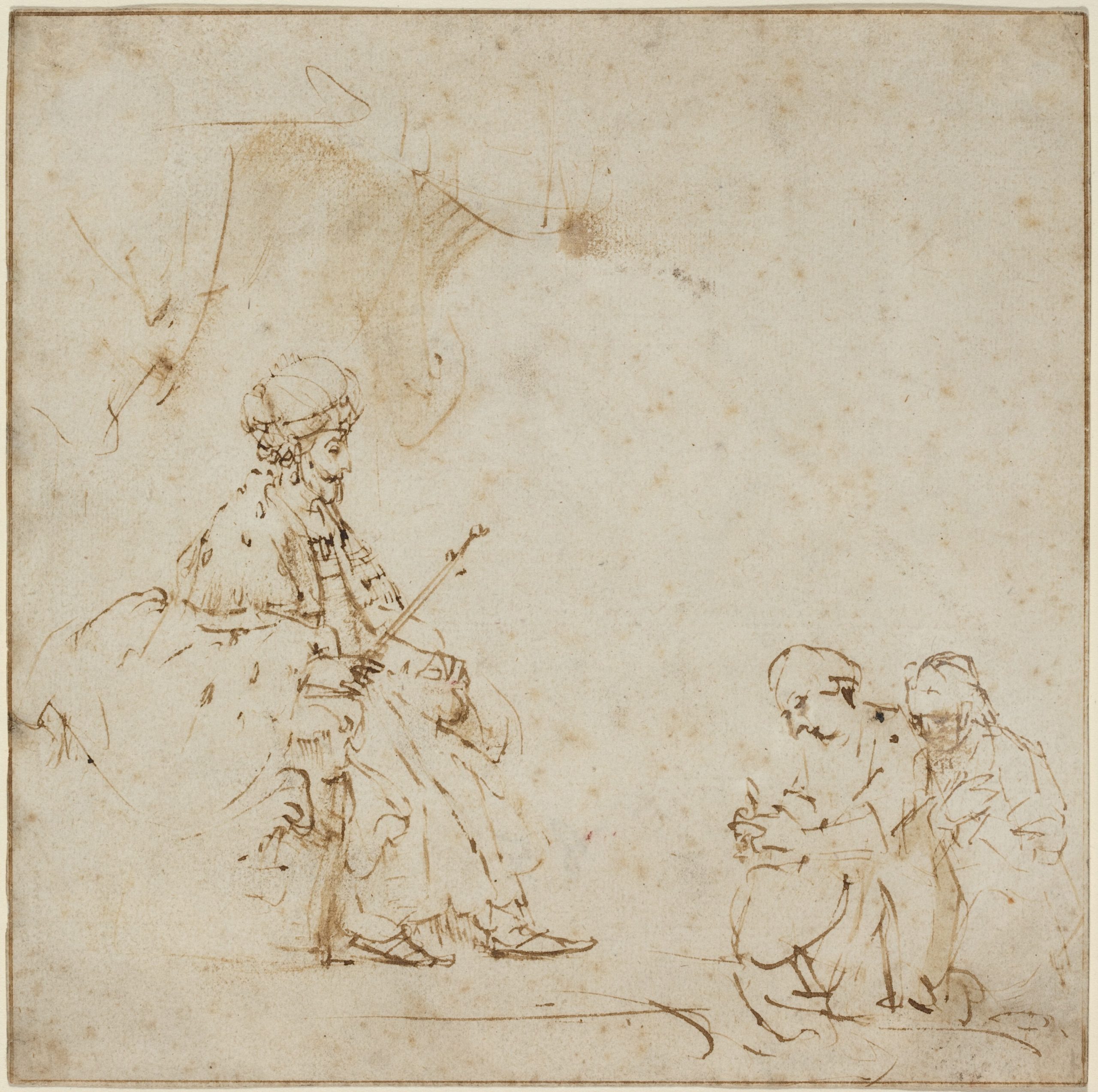 Influences for the Wandering Jew are also found in the New Testament. The servant Malchus is punished for his attempted arrest of Jesus. In the Gospel of John, Peter asks how the ‘the disciple whom Jesus loved will die’, and Jesus replies: “If I will that he tarry till I come, what is that to thee?” indicating at the theme of immortal waiting until the Second Coming. The first recognisable physical depiction of the Wandering Jew is found in the 1602 A Brief Description and Narration Regarding a Jew Named Ahasuerus, a German pamphlet in which ‘Ahasuerus’ is very tall, barefoot, and wears a long cloak. In later texts, he is also described as being an old man with a white beard.