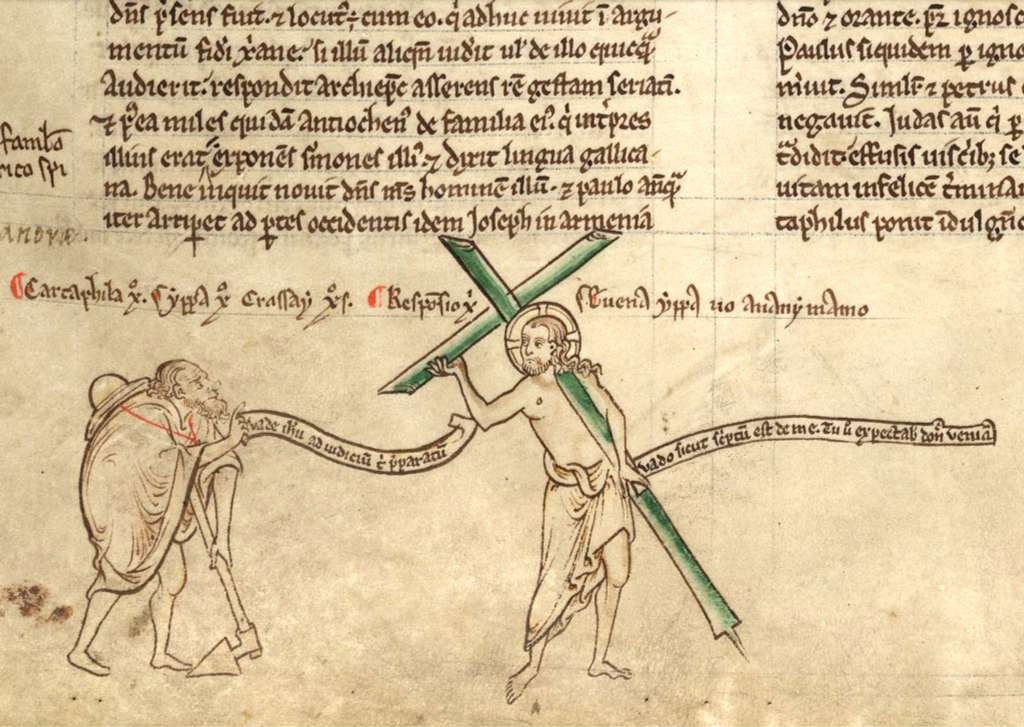 Historical chronicles evidenced ‘sightings’ of the mythical Wandering Jew, travelling from key sites for the Crusades such as Armenia, blurring the line between fact and fiction. Although the first written account is found in the 13th century—Matthew Paris’ Chronica Majora—the Wandering Jew’s dual punishments, of wandering and immortality, are shaped by biblical sources. In Genesis, after killing his brother Abel, Cain is declared to be “a fugitive and vagabond … the Lord set a mark upon him, lest any finding him should kill him”.
